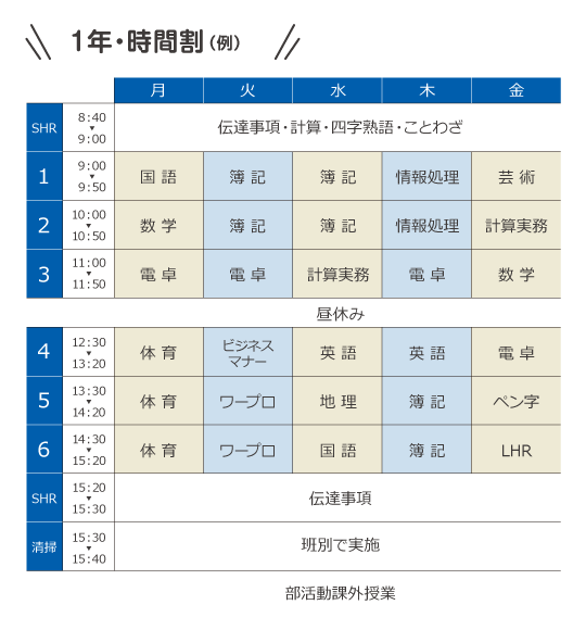●普通教科よりも、検定教科の授業時間を多く設定しています。