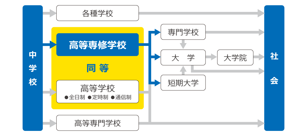 「高等専修学校」は、法律で定められた「専修学校」というグループに属します。